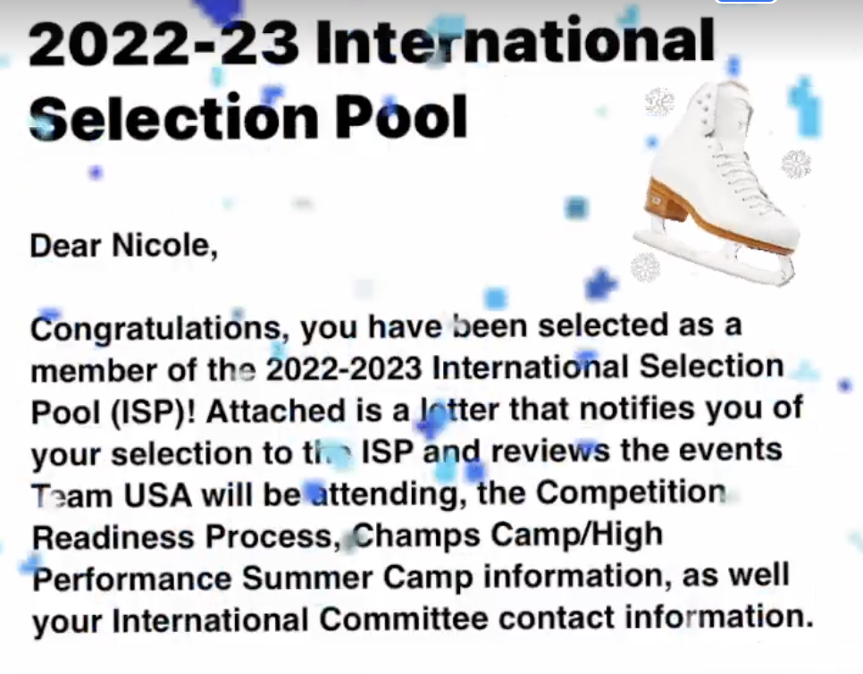 Qualified for the ISP (International Selection Pool) my freshman year. I received higher attention towards selection for international competitions and was on the same roster as Olympians.